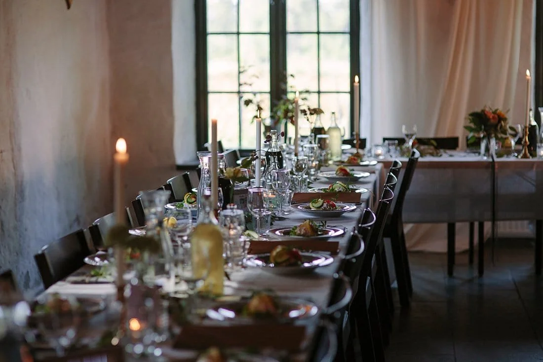 Efter vigseln drar vi oss tillbaks till Smedjan där vi förblir resten av dagen. Då blir det lite mingel med dryck och där efter middag. Har ni allergier eller specialkost så vill vi veta det när ni OSAr. Under middagen blir det diverse aktiviteter och det finns utrymme för tal om någon önskar det. Det kommer att finnas öl, vin, alkoläsk och alkoholfria alternativ.